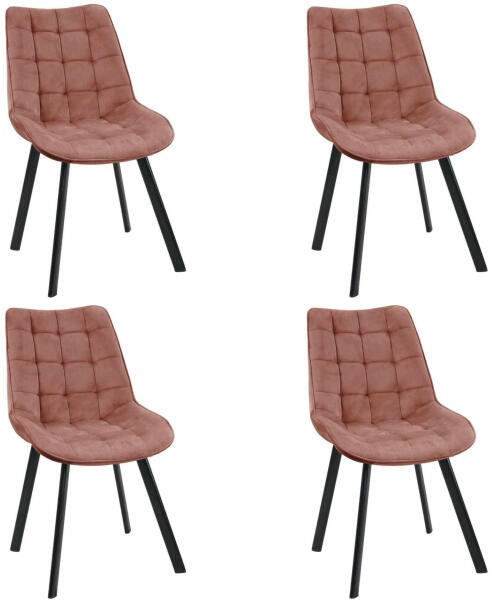 AKORD SJ. 22 Púder Rózsaszín Étkezőszék Szett (4 db) - Stílus és Kényelem Egyben! ? Ez a 4 darabos étkezőszék szett tökéletes választás étkeződbe vagy nappalidba, ötvözve a modern dizájnt a praktikus kényelemmel. A púder rózsaszín velúr kárpitozás elegáns megjelenést kölcsönöz, míg a fekete fémlábak stabilitást és stílust biztosítanak. Főbb jellemzők:Modern design: A steppelt velúr anyag divatos és időtálló. Kényelmes ülés: A velúr kárpitozás kellemes tapintású és komfortos ülést biztosít. Stílusos lábak: A fekete fémlábak klasszikus és modern enteriőrökhöz is passzolnak. Tartós szerkezet: A székek teherbírása 125 kg. Készlet tartalma: 4 db szék Műszaki adatok:Jellemző ÉrtékSzín Púder rózsaszínAnyag VelúrLáb anyaga AcélLáb színe FeketeÜlés szélessége 50 cmÜlés mélysége 43 cmÜlésmagasság 43-47 cmSzék magassága 90,5 cmSzék szélessége 50 cmSzék mélysége 60,5 cmMaximális terhelés 125 kgSúly (szett) 23,6 kgÖsszeszerelés: A székek lapraszerelten kerülnek kiszállításra. Az összeszerelés egyszerű, a csomag tartalmazza az ehhez szükséges alkatrészeket és útmutatót.