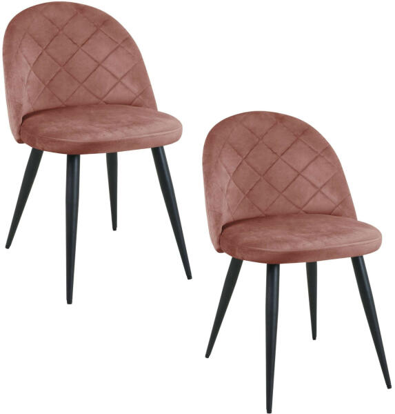 AKORD 2 db-os Étkezőszék szett - Púder rózsaszín velúr kárpitozással ✨ Varázsolja otthonát stílusossá és kényelmessé ezzel a modern, púder rózsaszín étkezőszék szettel! Tökéletes választás étkezőbe, nappaliba vagy akár dolgozószobába is. Főbb jellemzők:Modern design: A steppelt velúr kárpitozás elegáns és időtálló megjelenést biztosít. Kényelmes ülés: A velúr anyag kellemes tapintású, így a szék használata igazán komfortos. Erős és stabil: A fekete színű fémlábak nem csak jól mutatnak, de biztos tartást is garantálnak. Sokoldalú felhasználás: A szék klasszikus és modern enteriőrökbe is remekül illik. Termékleírás:Szín: Púder rózsaszín Anyag: Velúr kárpitozás, acél lábak Láb színe: Fekete Méretek: Ülésszélesség: 46 cm Ülésmélység: 43 cm Ülésmagasság: 47,5 cm Szék magassága: 77 cm Szék szélessége: 50 cm Szék mélysége: 54 cmMaximális terhelhetőség: 125 kg Súly: 12 kg / szék Székek száma a készletben: 2 Összeszerelés: Önszerelő bútor Csomag információk:Csomagok száma: 1 Csomag mérete: 77 x 41 x 50 cm Csomag súlya: 13,9 kg Ez a stílusos és praktikus szék szett tökéletes választás otthonába! ?