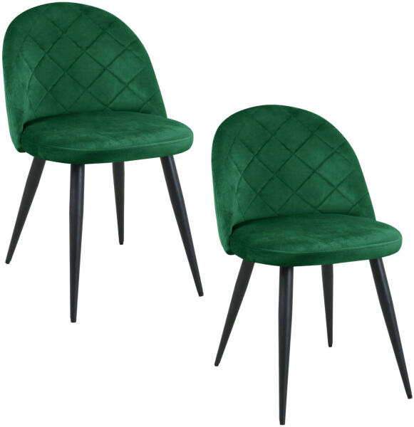 AKORD Steppelt Velúr Étkezőszék Szett - Elegáns kényelem otthonába ? Ez a 2 darabos, palackzöld velúr étkezőszék szett tökéletes választás étkezőjébe vagy nappalijába. A modern design és a steppelt kárpitozás elegáns megjelenést kölcsönöz, míg a velúr anyag kellemes tapintású és kényelmes ülést biztosít. Főbb jellemzők:Modern design: Stílusos kiegészítője bármilyen enteriőrnek. Kényelmes velúr kárpitozás: Puha és kellemes tapintású. Steppelt ülőfelület és háttámla: Elegáns és időtálló megjelenés. Fekete fémlábak: Klasszikus és modern stílushoz is illik. Maximális terhelhetőség: 125 kgMéretek:Méret ÉrtékÜlésszélesség 46 cmÜlésmélység 43 cmÜlésmagasság 47,5 cmSzék magassága 77 cmSzék teljes szélessége 50 cmSzék teljes mélysége 54 cmTermék súlya 12 kgAnyag & Szín:Szín: Palackzöld Kárpit: Velúr Lábak: Acél, fekete színben Összeszerelés: Önszerelő bútor. A csomag tartalmazza az összes szükséges alkatrészt és szerelési útmutatót. Élvezze a kényelmet és az eleganciát ezzel a gyönyörű étkezőszék szettel! ✨