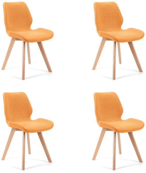 Elegáns skandináv stílusú szék narancssárga szövetkárpittal és természetes bükkfa lábakkal. Tökéletes választás étkezőbe, irodába vagy váróterembe, egyesítve a kényelmet és a modern dizájnt.