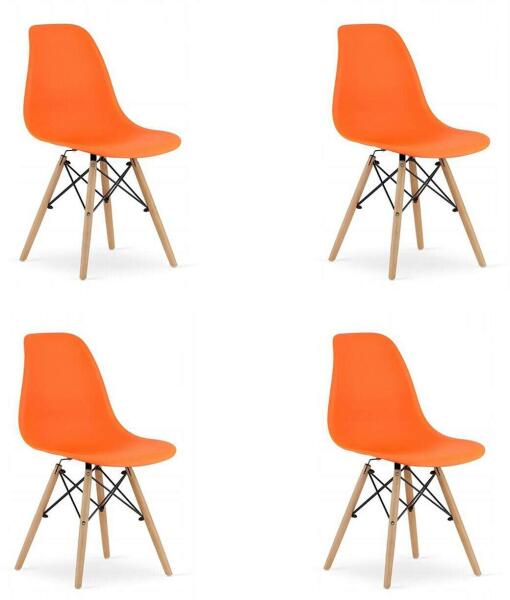 Artool Osaka Szék - 4 db-os szett: Skandináv stílusú étkezőszékek a modern otthonba ? Ez a 4 darabos szék szett tökéletes választás modern, skandináv stílusú otthonokba. A kényelmes ülés és a stílusos dizájn garantáltan feldobják a nappalit, étkezőt vagy akár az irodát is. A narancssárga szín vidámságot és energiát visz a térbe. Főbb jellemzők:Skandináv dizájn: Elegáns és időtálló stílus. Kényelmes ülés: Hosszú órákon át is kényelmesen üldögélhet benne. Tartós anyagok: Polipropilén ülés és bükkfa lábak a hosszú élettartamért. Könnyű tisztítás: A polipropilén könnyen tisztítható, vízálló és ellenáll a foltoknak. Stabil szerkezet: A bükkfa lábak biztosítják a szék stabilitását és tartósságát. Könnyű összeszerelés: Gyorsan és egyszerűen összeszerelhető. Méretek:Jellemző Méret (cm)Hosszúság 46Szélesség 54Magasság 81Ülésmélység 41Háttámla mag. 37Ülésmagasság 44Anyagok: Ülés: Polipropilén (PP) Lábak: Bükkfa Maximális terhelhetőség: 120 kg Hozza el a skandináv stílus eleganciáját otthonába ezzel a gyönyörű és praktikus szék szettel!