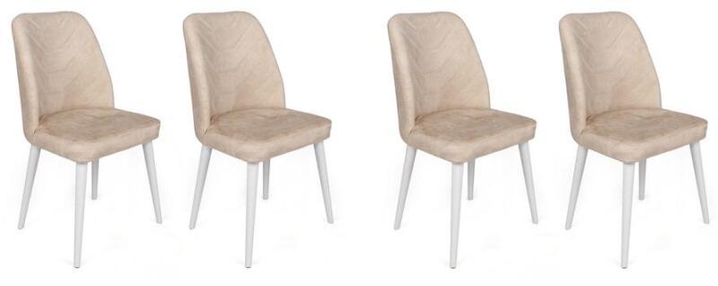 Tapasztalja meg a páratlan kényelmet és eleganciát székgarnitúránkkal Alakíts a át életterét a kényelem és a stílus paradicsomává gyönyörű székgarnitúránkkal. A legnagyobb precizitással készült, négy székből álló készletet úgy terveztük, hogy új magasságokba emelje lakberendezését. Kényeztesse magát a luxus kényelemmel Merüljön el a plüss bársonyszövet ülésekben, és tapasztalja meg a kényelem olyan szintjét, mint még soha. A szövet puhaságának köszönhetően úgy fogja érezni magát, mintha egy felhőn ülne, tökéletes helyet biztosítva a pihenéshez és kikapcsolódáshoz egy hosszú nap után. Növelje az otthoni dekorációt Karcsú és modern kialakításával székgarnitúránk könnyedén illeszkedik bármilyen lakberendezési stílusba, és eleganciát kölcsönöz helyiségeinek. A bézs és a fehér színek kombinációja harmonikus kontrasztot teremt, amely bármilyen színösszeállításhoz illeszkedik, így sokoldalúan kiegészíti otthonát. Páratlan tartósság A 100% fémvázzal és gyertyánfa lábakkal készült székgarnitúránkat úgy építettük, hogy kiállja az idő próbáját. A stabil váz stabilitást és tartást biztosít, míg a gyertyánfa lábak természetes szépséget kölcsönöznek. A 160 kg-os teherbírással ezek a székek tökéletesek mind a mindennapi használatra, mind a vendégek szórakoztatására. Technikai részletek: