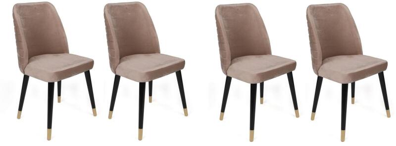 Tapasztalja meg a luxust és a kényelmet gyönyörű székkészletünkkelAlakítsa át életterét az elegancia és a kifinomultság paradicsomává lenyűgöző székgarnitúránkkal. Ez a 4 darabos szett aprólékos odafigyeléssel készült, és úgy tervezték, hogy a luxus és a kényelem csúcsát nyújtsa. Kényeztesse magát a bőségben a bársonyszövet és a gyertyánfa lábakkal Minden szék ülőfelülete pazar bársonyszövet kárpitozású, amely egy csipetnyi fényűzést és puha, bársonyos tapintást biztosít. A gazdag textúra luxusérzetet kölcsönöz bármely helyiségnek, így ezek a székek tökéletesen kiegészítik lakberendezését. A gyertyánfa lábak nem csak stabil támasztékot nyújtanak, hanem egy kis természetes szépséget is adnak az egész dizájnhoz. Elősíti életterét időtlen színpalettávalA székkészlet időtlen színpalettával rendelkezik, amely könnyedén illeszkedik bármilyen belsőépítészeti stílushoz. A bézs, a fekete és az arany kombinációja harmonikus egyensúlyt teremt, és egy csipetnyi kifinomultságot kölcsönöz a lakótérnek. Akár modern, hagyományos vagy eklektikus a dekorációja, ezek a székek zökkenőmentesen illeszkednek a meglévő esztétikájába. Páratlan tartósság és szilárdságA 100%-ban fémvázzal készült székek tartósnak készültek. A masszív konstrukció páratlan tartósságot és szilárdságot biztosít, így a székek maximálisan 160 kg súlyt képesek elviselni. Biztos lehet benne, hogy ezeket a székeket úgy tervezték, hogy hosszú éveken át tartó kényelmet és támogatást nyújtsanak. Technikai részletek: Váz: 100% fém Ülés: Bársony szövet Gyertyánfa lábak Szélesség: 50 cm Magasság: 90 cm Mélység: 49 cm (4 db) Ülésmagasság: 40,5 cm Teherbírás: 160 kg Szín: bézs, fekete és arany