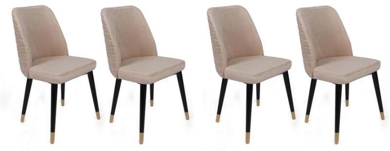 Tapasztalja meg a luxust és az eleganciát székkészletünkkel Alakítsa át életterét a luxus és az elegancia paradicsomává gyönyörű székgarnitúránkkal. A legnagyobb precizitással és a részletekre való odafigyeléssel készített négy székből álló készletet úgy terveztük, hogy új magasságokba emelje lakberendezését. Kényeztesse magát páratlan kényelemmel Merüljön el a plüss bársonyszövet ülésekben, és tapasztalja meg a páratlan kényelmet, mint még soha. A bársonyszövet puha és sima textúrája miatt soha nem akarja majd elhagyni a helyét. Akár szeretteivel étkezik, akár egyszerűen csak pihen egy hosszú nap után, székgarnitúránk minden alkalommal kényelmes ülőalkalmatosságot biztosít. Növelje az otthoni dekorációt A krém, fekete és arany színek lenyűgöző kombinációjával székgarnitúránk bármely helyiséget kifinomulttá varázsol. Az elegáns kialakítás és a karcsú sziluett könnyedén illeszkedik bármilyen lakberendezési stílushoz, így tökéletes kiegészítője étkezőjének, nappalijának vagy akár irodájának. Tartósság és stabilitás A 100%-os fémvázzal és gyertyánfa lábakkal készült székgarnitúránkat tartós használatra tervezték. A masszív konstrukció hosszú élettartamot biztosít, míg a gyertyánfa lábak stabilitást és támasztékot nyújtanak. A 160 kg teherbírású székeket úgy tervezték, hogy kiállják az idő próbáját, és mindenféle méretű egyéneknek megfeleljenek. Technikai részletek: