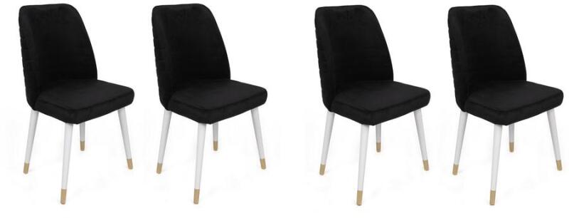 Tapasztalja meg a luxust és a kényelmet gyönyörű székkészletünkkel Alakítsa át életterét az elegancia és a kifinomultság paradicsomává lenyűgöző székgarnitúránkkal. Ez a 4 darabos, aprólékos odafigyeléssel készült szett úgy lett kialakítva, hogy új magasságokba emelje lakberendezését. Páratlan minőség és tartósság A 100% fémvázzal készült székgarnitúránk kivételes szilárdságot és stabilitást biztosít, garantálva a hosszú évekig tartó megbízható használatot. A gyertyánfa lábak természetes szépséget kölcsönöznek, míg a bársony szövet ülőfelület bőséget és kényelmet sugároz. Kényeztesse magát a legmagasabb szintű kényelemmel Süllyedjen bele a plüss bársonyszövet ülésbe, és tapasztalja meg a semmihez sem hasonlítható kényelmet. Az ergonomikus kialakítás kiváló deréktámaszt biztosít, így egy hosszú nap után pihenhet és lazíthat. Esztétikus és sokoldalú A fekete, fehér és arany színek kombinációja vizuálisan feltűnő kontrasztot teremt, amely könnyedén kiegészít bármilyen belsőépítészeti stílust. Akár modern, kortárs, akár hagyományos dekorációval rendelkezik, székgarnitúránk zökkenőmentesen illeszkedik, és egy csipetnyi kifinomultságot kölcsönöz helyiségének. Technikai részletek: