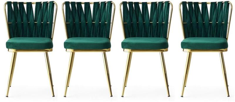 Tapasztalja meg a barokk csillogás fényűző eleganciáját székkészletünkkel Alakítsa át életterét a fényűzés paradicsomává gyönyörű székgarnitúránkkal. A barokk és a glam stílusok tökéletes keverékével tervezett szett a kifinomultság egy csipetnyi fényét varázsolja bármelyik szobába. Kényeztesse magát páratlan kényelemmel és tartóssággal Az aprólékos odafigyeléssel készített székgarnitúránk páratlan kényelmet és tartósságot kínál. A 100% fémváz stabilitást és hosszú élettartamot biztosít, míg a bársonyszövet és a melaminbevonatú forgácslapból készült ülés plüss és luxus érzetet nyújt. A fém és bársony szövetből készült háttámla a kényelem és a stílus extra rétegét adja. Növelje dekorációját lenyűgöző színekkel Az arany és a zöld lenyűgöző kombinációjában kapható székkészletünk azonnal feldobja belsőépítészetét. A gazdag és élénk színek egy csipetnyi csillogást és eleganciát kölcsönöznek bármely térnek, így tökéletes kiegészítője lesz otthonának. Technikai részletek: