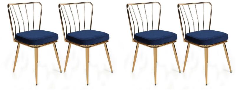 Tapasztalja meg a luxust és az eleganciát gyönyörű székkészletünkkelAlakítsa át életterét a kifinomultság fellegvárává lenyűgöző székgarnitúránkkal. A legnagyobb precizitással és a részletekre való odafigyeléssel készített 4 darabos szettet úgy terveztük, hogy új magasságokba emelje lakberendezését. Páratlan kényelem és tartósságKényeztesse magát a bársonyszövetből készült, aprólékosan kárpitozott ülések plüss kényelmével, amelyek puha és fényűző érzetet nyújtanak. A melaminbevonatú forgácslapból készült ülések biztosítják a tartósságot és a mindennapi kopásnak való ellenállást. Székeink 50 cm-es ülésmagasságukkal optimális kényelmet nyújtanak a több órás pihenéshez. Esztétikusan kellemes designA sötétkék és arany színek magával ragadó keverékével székgarnitúránk bőséget és kifinomultságot sugároz. A karcsú fémkeret és háttámla egy csipetnyi modernitást kölcsönöz, így tökéletes kiegészítője bármely kortárs vagy hagyományos környezetnek. Émlékezetes pillanatok megteremtéseAkár egy pazar vacsoraestet rendez, akár egy csendes estét élvez szeretteivel, székgarnitúránk olyan hangulatot teremt, amely egyszerre hívogató és emlékezetes. Elegáns kialakítása és kényelmes ülőfelülete biztosítja, hogy minden ölelésében eltöltött pillanatot megbecsüljön. Technikai részletek: 100% fém a fokozott tartósság érdekében Ülés: Bársonyszövet a luxus kényelemért Melaminbevonatú forgácslap a fokozott rugalmasság érdekében Háttámla: Fém az elegáns és modern megjelenésért Méretek: Szélesség: 43 cm, Magasság: 82 cm, Mélység: 42 cm (4 db) Ülésmagasság: 50 cm az optimális kényelem érdekében Teherbírás: 175 kg a hosszan tartó tartás érdekében Szín: Sötétkék és arany a magával ragadó esztétikumért