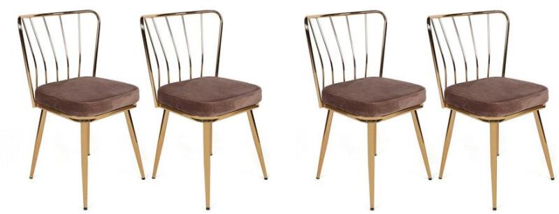 Alakítsa át életterét elegáns és luxus Szék Szettünkkel. A legfinomabb anyagokból készült, ez a 4 székből álló szett egy csipetnyi kifinomultságot ad bármely helyiséghez. A bársonyszövet és a fémkeret kombinációja lenyűgöző kontrasztot teremt, amely egyszerre modern és időtlen. Luxus Design A gazdag bársonyszövet és a letisztult fémkeret luxust és eleganciát sugároz. A világosbarna és arany színek egy csipetnyi csillogást adnak otthona dekorációjához, így tökéletes díszítőelem bármely helyiséghez. Kényelem és Tartósság Ez a szék szett nemcsak stílusos, hanem rendkívül kényelmes és tartós is. A melamin bevonatú forgácslap ülés szilárd alapot biztosít, míg a fém háttámla támogatást és stabilitást nyújt. 175 kg teherbírásával ezek a székek hosszú távra készültek. Tökéletes Méret A 43 cm szélesség, 82 cm magasság és 42 cm mélység ideális méretet biztosít bármely térhez. Az 50 cm ülésmagasság optimális kényelmet garantál, míg a 41 cm ülés szélesség és 51 cm háttámla szélesség elegendő helyet biztosít a pihenéshez. Fokozza otthonát Szék Szettünkkel, és tapasztalja meg a stílus, kényelem és tartósság tökéletes egyensúlyát. Rendelje meg a magáét még ma, és emelje új magasságokba életterét. Műszaki Részletek: