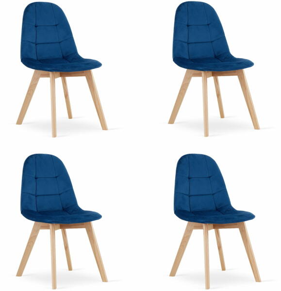 BORA sötétkék bársony szék szett (4 db) - Stílus és kényelem egyben! ? Dobd fel otthonod ezzel a 4 darabos BORA szék szettel, mely tökéletes választás a nappaliba, étkezőbe vagy akár a hálószobába is! A sötétkék bársony bevonat elegáns megjelenést kölcsönöz, míg a bükkfa lábak a stabilitást és a természetes hatást biztosítják. Főbb jellemzők:Időtlen dizájn: Könnyen illeszkedik bármilyen stílusú otthonba. Kényelmes ülés: A bársony bevonat és az ergonomikus kialakítás gondoskodik a komfortérzetről. Tartós anyagok: A bükkfa lábak és a minőségi bársony hosszú élettartamot garantálnak. Méretek:Méret Érték (kb. )Székmagasság 81,5 cmÜlésmagasság 44 cmSzék szélessége 44,5 cmÜlésszélesség 44 cmSzék mélysége 54 cmÜlésmélység 38 cmSpecifikációk:Ülés anyaga: Bársony Lábak: Bükkfa Maximális terhelés: 110 kg / szék Nettó súly: kb. 3,6 kg / szék Szín: Tengerészkék Összeszerelés: A székek könnyen összeszerelhetők, így rövid időn belül élvezheted a kényelmüket és stílusukat. ?️
