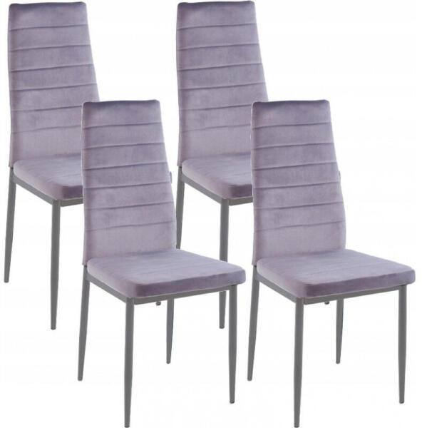 Coleta Nova Szürke Bársony Étkezőszék Szett (4 db) - Stílus és Kényelem Egyben! ? Emelje új szintre étkezője megjelenését a Coleta Nova szürke bársony székekkel! Ez a 4 darabos szett tökéletes választás, ha modern és elegáns étkezőre vágyik. Főbb jellemzők:Elegáns dizájn: Letisztult vonalak és bársonyos felület a kifinomult megjelenésért. Prémium kényelem: Puha, szürke bársony kárpitozás a luxus érzetéért. Masszív szerkezet: Strapabíró fém váz a hosszú távú használathoz (NEM műanyag!). Padlóvédelem: A lábak végén található dugók megakadályozzák a padló karcolódását. Könnyen tisztítható: Praktikus választás a mindennapi használatra. Ergonomikus kialakítás: Kényelmes háttámla a hosszabb étkezésekhez. Sokoldalú felhasználás: Ideális étkezőbe, dolgozó- vagy tárgyalóterembe is. Méretek: Szélesség: 40 cm Mélység: 45 cm Magasság: 99 cm A Coleta Nova székekkel stílusos és kényelmes étkezőteret teremthet. A prémium minőségű bársony huzat és az erős fémváz harmonikus egységet alkot. Tegye különlegessé otthonát ezzel a szettel!