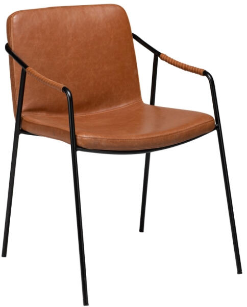 A DAN-FORM Boto design étkezőszék első pillantásra megragadja a tekintetet a retró stílus könnyed érintésével. A vékony, fekete lakkozott talp minimálisan kapcsolódik a karfákhoz. Az ülés, valamint a háttámla elegáns, barna színű öko-bőrből készült. A stílusos bónusz egy ugyanebből az anyagból készült szélesebb csík, amely a kartámaszok köré tekeredik.