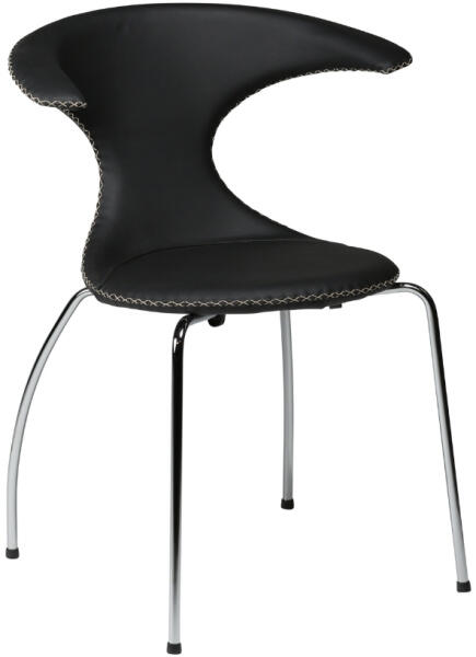A DAN-FORM egyedi Flair széke krómozott talapzaton, valódi fekete bőrrel kárpitozva. A stílusos kartámaszok maximális kényelmet biztosítanak. Ez a szék többcélú, mivel a konyhában, az étkezőben, a nappaliban és a dolgozószobában is elfér. Az irodában is megállja a helyét. A Flair termékcsalád székei már első pillantásra kitűnnek a tömegből.