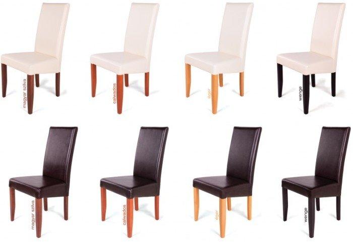 Az étkezőszék bükkfa lábai 10 színben elérhető: mahagóni, wenge, cseresznye, dió, zebrano, calvados, szilva, tölgy, amerikai cseresznye, natúr
