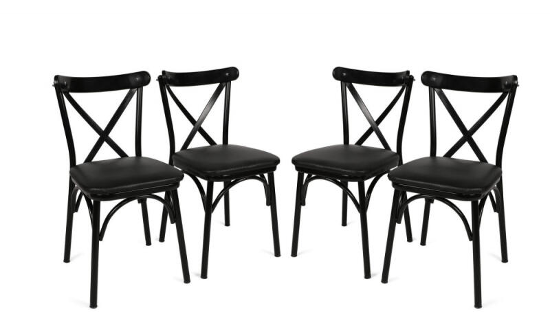 Ekol1331V4 Étkezőszék 4db Fekete 100% melamin bevonatú bútorlap Fém lábak Szélesség: 42 cm magasság: 81 cm mélység: 40 cm (4 darab) Ülésmagasság: 40 cm Csapágyakapacitás: 200 kg