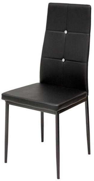 Elvira Fekete Műbőr Szék Szett (4 db) - Elegáns és Kényelmes Étkezőszék ? Varázsoljon stílust és eleganciát otthonába az Elvira fekete műbőr székekkel! Ez a 4 darabos szett nem csak a konyhában mutat jól, hanem irodákban, várótermekben vagy éttermekben is remekül mutat. A gyémánt hatású díszítés luxus megjelenést kölcsönöz a székeknek, vonzva a vendégeket és a családtagokat egyaránt. Főbb előnyök: ✨ Elegáns dizájn csillogó gombokkal ? Párnázott ülőke és háttámla a maximális kényelemért ? Tartós műbőr a hosszú élettartamért ⚖️ Alacsony tömeg, nagy teherbírás a könnyű mozgathatóságért és a stabilitásért ? Könnyen tisztítható felület a praktikus használatért ?️ PVC dugókkal rögzített széklábak a padló karcolódásának megakadályozására ?️ Gyors és egyszerű összeszerelésTovábbi jellemzők:Szín: Fekete Csomag tartalma: 4 db szék Az Elvira székek nem csak szépek, de rendkívül kényelmesek is. A párnázott ülőke és háttámla biztosítja a komfortos ülést, míg a tartós műbőr könnyű tisztíthatóságot garantál. A székek stabilak és tartósak, így hosszú távon is élvezheti a használatukat. A PVC dugókkal ellátott lábak védik a padlót a karcolásoktól, így nem kell aggódnia a sérülések miatt. Az Elvira székekkel garantált a stílusos és kényelmes étkezés vagy munkavégzés! ?️