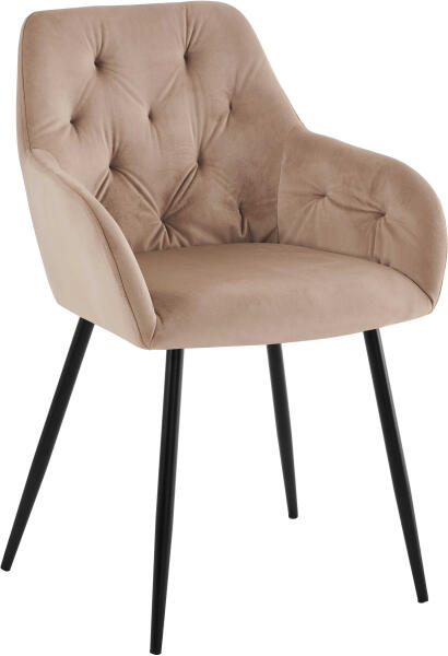 Étkezőszék TERESA | bézs A kárpitozott TERESA étkezőszék fém lábakkal a stílus, a kényelem és a tartósság ideális kombinációja. Ha praktikus és modern kiegészítőt keres konyhájába, az Elvisia széke mindenképpen felkelti az érdeklődését. A halvány kárpitozás és a fekete fém lábak kombinációja elegáns, a világos színek légies és modern benyomást keltenek. Jól illik mind a fa, mind az üveg étkezőasztalokhoz. Dobja fel étkezőjét a TERESA székkel, és varázsolja minden étkezést kényelmes és stílusos élménnyé. Bársony anyag acél lábak A szék kiváló minőségű acél talpon áll, amely modern megjelenést kölcsönöz, ugyanakkor stabilitást és szilárdságot biztosít a széknek. A bársony anyag kellemes tapintású, puha, kopásálló , bolyhosodásálló, és PET-barát, így a karcolásokkal szemben is ellenállóbb . szélesség: 57 cm magasság: 86 cm mélység: 60 cm súly: 10,6 kg Teherbírás: 120 kg szín: matt fekete /   bézs Bluvel 28