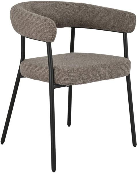 Étkezőszék TRIVIO | barna A barna TRIVIO étkezőszék nagyszerű választás azok számára, akik a modern dizájn, a magas kényelem és a tartós anyagok kombinációját keresik. Az elegáns sziluett, a finoman lekerekített háttámla és a divatos buklé szövetből készült kárpitozás meleg és kifinomult megjelenést kölcsönöz a belső térnek. A stabil fémszerkezet garantálja a szilárdságot és a tartósságot - nemcsak étkezőbe, hanem irodába vagy stílusos kávézóba is alkalmas. Tökéletesen illik a natúr és sötét színű étkezőasztalokhoz, de önmagában is kiemelkedik, mint egyedi dizájnbútor. fém lábak Bouclé szövet A buklé szövet egy aktuális lakberendezési trend, amely puha, meleg és vizuálisan érdekes. Finom, strukturált anyag, amely kellemes tapintású. A fém lábak szilárdságot, stabilitást és hosszú élettartamot biztosítanak. szélesség:   57,5 cm magasság: 77 cm mélység: 56 cm ülésmagasság: 49 cm ülésmélység: 46 cm súly: 6,7 kg Max. teherbírás: 110 kg szín: szürke / fekete lábak