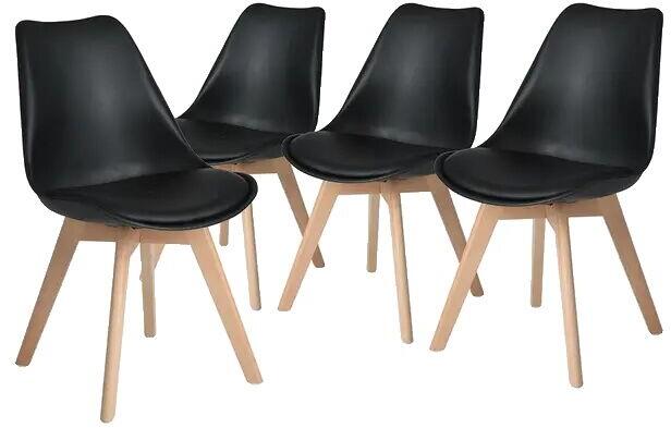 Stílusos Századközép Modern Étkezőszékek (4 db-os szett) - Elegancia és Kényelem Egyben! ? Dobja fel étkezőjét vagy irodáját ezzel a négy darabos, századközép stílusú étkezőszék szettel, mely a modern design és a kényelmes használat tökéletes ötvözete. A fekete színű székek bármilyen enteriőrbe könnyen beilleszthetők, míg a fa lábak természetes és elegáns megjelenést kölcsönöznek. Főbb Jellemzők:Kényelmes Ülés: A polipropilén ülőfelület puha műbőr párnával van ellátva, amely extra komfortot biztosít a hosszú étkezések vagy megbeszélések során. A műbőr könnyen tisztítható, így a székek karbantartása egyszerű. Erős és Stabil: A tömör bükkfa lábak kiváló tartást biztosítanak, így a székek akár 120 kg-os terhelést is elbírnak. A masszív konstrukció garantálja a hosszú élettartamot. Könnyű Összeszerelés: A székek egyszerűen, szerszámok nélkül összeszerelhetők a mellékelt útmutató segítségével. Pillanatok alatt élvezheti az új székek kényelmét. Padlóvédelem: A széklábakon található védőtalpak megakadályozzák a padló karcolódását, miközben stabilitást biztosítanak. Ideális választás otthonokba, irodákba és egyéb helyiségekbe. Műszaki adatok:Jellemző ÉrtékSzék stílusa Századközép modernSzék anyaga Polipropilén, műbőr, tömör bükkfaSzék színe FeketeMaximális terhelés 120 kgÖsszeszerelés Gyors és egyszerű, útmutatóvalLábvédők Karcolásmentes stabilitást biztosítanakÜléskialakítás Rögzített párna a kényelemértHasználat Lakóterületek, irodák, éttermek, bárokA csomag tartalma: 4 db étkezőszék Szerelési alkatrészek Összeszerelési útmutató Élvezze a stílusos és kényelmes étkezéseket vagy munkát ezekkel a modern étkezőszékekkel! ✨