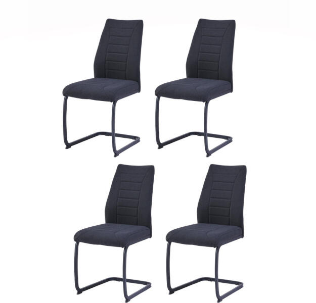 Modern étkezőszék ergonomikus kialakítással és fém lábazattal. A szék ülőfelülete és háttámlája puha szövettel kárpitozott, díszes varratokkal steppelt, és sűrű habbal van töltve, hogy hosszú ideig tartó ülés esetén is kényelmes legyen. Az ülőfelület magassága 48 cm a padlótól. A szék konzolos alapja fémcsőből készült, méretei 1,5x2,5 cm, és matt fekete színű porfestett bevonattal rendelkezik a fém környezeti hatásokkal szembeni jobb védelme érdekében. A szék maximális teherbírása 120 kg.