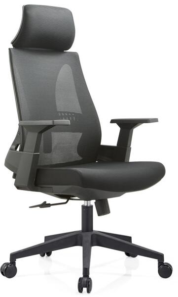 Szobák > Konyhabútor, étkezőbútor > Étkezőszék - Modern irodai szék minőségi szövet és háló kombinációjával. Forgatható funkcióval és állítható magassággal. Fix karfákkal és fejtámlával rendelkezik. Az ülés belsejében habszivacs található. A szék pillangó billenő mechanizmussal van ellátva. A váz és az alap fekete színű és műanyagból készült. 5 fekete PU görgővel rendelkezik. Max. teherbírása 120 kg.