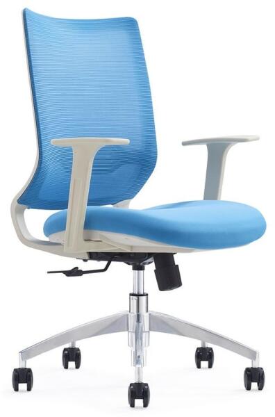 Egyszerű irodai szék, minőségi hálós anyaggal kárpitozva. A szék gyönyörű kék színű. Forgatható és magasságban állítható. Az ülés belsejében habszivacs található. A váz és a fix karfák fehér színűek és műanyagból készültek. A szék egy pozícióban dönthető mechanizmussal rendelkezik. A fehér alumínium váz 5 fekete gumi görgővel rendelkezik. Max. teherbírás 110 kg.  - Mindigbútor