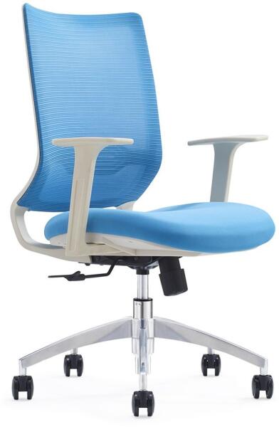 Szobák > Konyhabútor, étkezőbútor > Étkezőszék - Egyszerű irodai szék, minőségi hálós anyaggal kárpitozva. A szék gyönyörű kék színű. Forgatható és magasságban állítható. Az ülés belsejében habszivacs található. A váz és a fix karfák fehér színűek és műanyagból készültek. A szék egy pozícióban dönthető mechanizmussal rendelkezik. A fehér alumínium váz 5 fekete gumi görgővel rendelkezik. Max. teherbírás 110 kg.