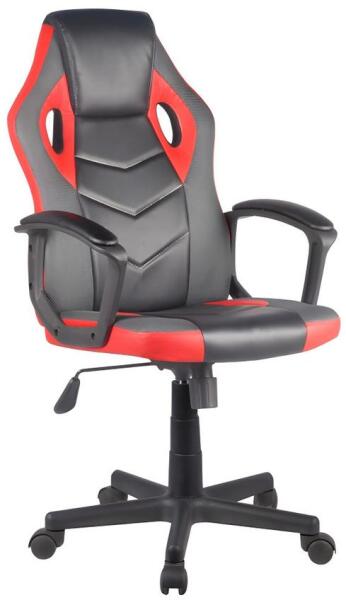 Modern irodai szék gamer esztétikával, vizuálisan vonzó megjelenéssel és ergonomikus tartást biztosítva. A szék kiváló minőségű műbőrrel kárpitozva, amely tartós és könnyen karbantartható, valamint légáteresztő hálós anyaggal párosítva, amely kényelmet biztosít hosszabb használat során is. A színpaletta szürke és fekete színek keveréke, melyet merész piros díszítések tarkítanak, dinamikus hatást kölcsönözve a dizájnnak. A szék funkcionalitása ugyanolyan lenyűgöző, mint a stílusa. 360 fokos forgatási képességgel rendelkezik, ami könnyed manőverezhetőséget és rugalmasságot biztosít irodai környezetben. A magasságállítást egy egyszerű gázliftes mechanizmus segíti, amely a tartóoszlopban található, így biztosítva a zökkenőmentes és zökkenőmentes átmenetet a kívánt ülésmagasságba. Ezenkívül a szék pillangómechanizmussal is fel van szerelve, amely lehetővé teszi az ülés dőlésének tetszés szerinti módosítását, tovább növelve a kényelmet. A karfák párnázott tetejűek, amelyek megfelelő támaszt nyújtanak a karoknak, és csökkentik a terhelést a hosszú munka vagy játék során. Bár rögzítettek, úgy vannak elhelyezve, hogy kiegészítsék a karok természetes nyugalmi testtartását. A szék alapja masszív nejlonból készült, egy olyan anyagból, amelyet szilárdsága és stabilitása miatt választottak. Ez a robusztus alapzat maximum 110 kg-os súlykapacitást bír el, így a szék megbízható választás széles felhasználói kör számára. Összességében ez az irodai szék a stílus, a kényelem és a funkcionalitás fúzióját kínálja, amelyet mind a lelkes játékosok, mind az elhivatott szakemberek igényeinek kielégítésére terveztek. Modern kialakítása, állítható funkciói és robusztus konstrukciója ideális kiegészítőjévé teszi bármilyen irodai vagy játékkörnyezetnek.  - Mindigbútor