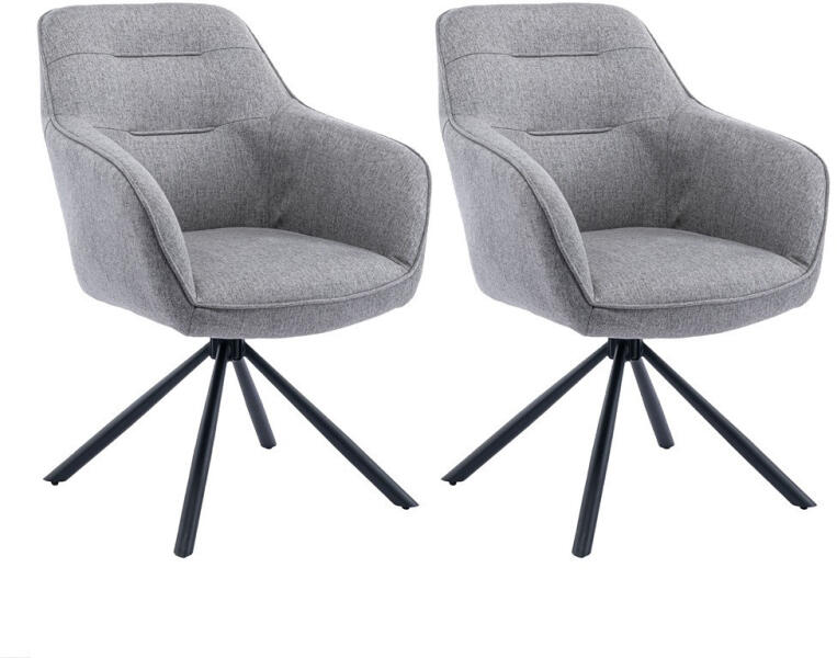 Kényelmes étkezőszék karfákkal, amely remekül fog mutatni otthonában. Az egész szék puha szövettel kárpitozott, a háttámlán pedig díszes varrások találhatók. A szék ülőfelülete 45 cm mély és 42 cm széles. Az ülőfelület 48 cm magasságban található a padlótól. Az alapzatban található forgólap lehetővé teszi, hogy a szék ülőfelülete 180°-ban elforduljon. A fekete színű fém alapzat porfestett a jobb védelem érdekében. A szék maximális teherbírása 120 kg.