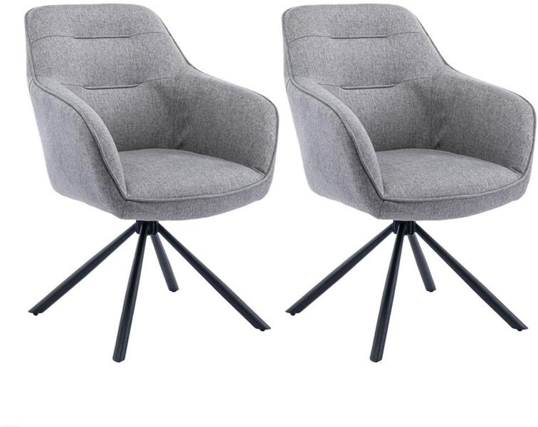 Szobák > Konyhabútor, étkezőbútor > Étkezőszék - Kényelmes étkezőszék karfákkal, amely remekül fog mutatni otthonában. Az egész szék puha szövettel kárpitozott, a háttámlán pedig díszes varrások találhatók. A szék ülőfelülete 45 cm mély és 42 cm széles. Az ülőfelület 48 cm magasságban található a padlótól. Az alapzatban található forgólap lehetővé teszi, hogy a szék ülőfelülete 180°-ban elforduljon. A fekete színű fém alapzat porfestett a jobb védelem érdekében. A szék maximális teherbírása 120 kg.