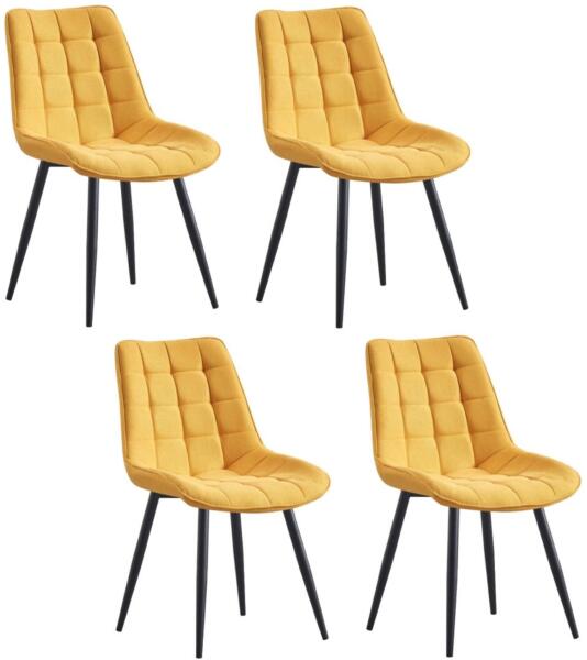 Szobák > Konyhabútor, étkezőbútor > Étkezőszék - Étkezőszék vastagon párnázott háttámlával és ülőfelülettel. A kárpitozás dekoratív, négyzet alakú öltésekkel van steppelve, amelyek feldobják a szék megjelenését. A szék ülőfelületének mélysége 43,5 cm. A szék lábai fémből készültek és fekete porfestett bevonattal vannak ellátva a jobb védelem érdekében. A maximális teherbírás 130 kg.