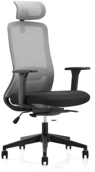 Modern irodai szék, fekete és szürke színek kombinációjában, számos ergonomikus funkcióval. Az irodai szék forgatható és magasságban állítható, a főoszlopban gázmechanizmus található. A szék háttámlája polipropilénből és légáteresztő hálóból készült, amely lehetővé teszi a levegő keringését, míg az ülőfelület puha szövettel kárpitozott és formázott habbal töltött a jobb kényelem érdekében. A PU karfák magassága állítható, a fejtámla is állítható. Az irodai szék háttámlája állítható deréktámasszal is fel van szerelve. A fekete váz nejlonból készült. Az irodai szék maximális teherbírása 120 kg.  - Mindigbútor
