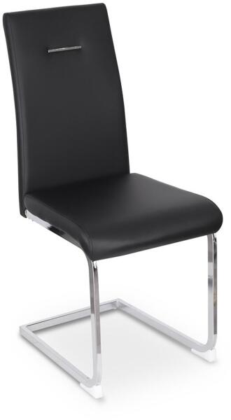 Szobák > Konyhabútor, étkezőbútor > Étkezőszék - Kényelmes étkezőszék, műbőrrel kárpitozva, amely könnyű karbantartást és gyors tisztítást tesz lehetővé foltok esetén. Szürke vagy fekete színben kapható, fényes, fém, szánkó alakú talpon. A karfa nélküli kialakítás rengeteg helyet biztosít a különböző ülési pozíciókhoz, ugyanakkor kevesebb helyet foglal, amikor a szék össze van rakva. Az ülőlap 5 cm vastag, 44 cm mély és 48,5 cm magasságban van a padlótól. A szánkó alakú talp krómozott fémcsövekből készült, mérete 2,5 x 1,5 cm. A szék maximális teherbírása 120 kg.