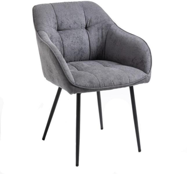 Szobák > Konyhabútor, étkezőbútor > Étkezőszék - Kárpitozott étkezőszék, többféle színben kapható. A szorosan illeszkedő karfák vastagon párnázottak és minőségi anyaggal kárpitozottak. A háttámlára és az ülőfelületre díszvarrással van varrva. A szék ülőfelülete 41,5 cm széles, 44,5 cm mély és 47,5 cm magas. A karfák magassága 61 cm. A szék alapja fémből készült, és a jobb védelem érdekében fekete színű porfestett. A szék maximális teherbírása 120 kg.