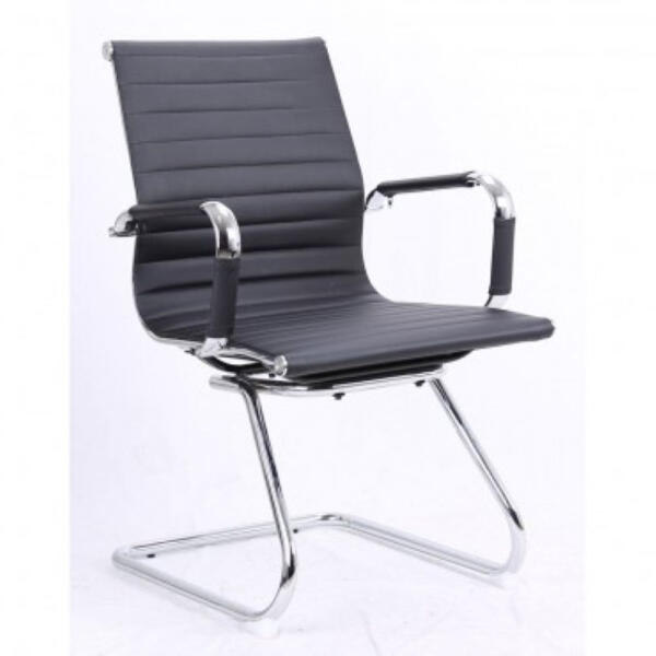 Műbőrből készült tárgyalószék, karfákkal és krómozott lábazattal. Max. teherbírás 120 kg. Háttámla szélessége: 44 cm, magasság: 47 cm;ülés szélessége: 48 cm, mélység: 46 cm. Az ülőfelület magassága 45 cm, a karfák magassága az ülőfelülettől a tetejéig 22,5 cm. Ugyanebben a kivitelben irodai székként is kapható.