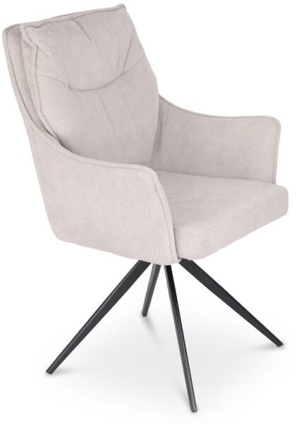 A modern étkezőszék vastagon kárpitozott puha szövettel, vékony, fix karfákkal van ellátva. Több színváltozatban kapható, sötétszürke, barna vagy bézs színben. Az ülőfelület 8,5 cm vastag, 43 cm széles és 50 cm magasságban helyezkedik el a talajtól. A fekete lábazat fémcsövekből készült, 3x1,5 cm méretű és porfestett a környezeti hatásokkal szembeni jobb védelem érdekében. A lábazatban található forgólap lehetővé teszi az ülőfelület 360°-os elforgatását. A székek mindenféle asztallal kombinálhatók, és alkalmas kiegészítői lehetnek étkezőknek, nappaliknak, konyháknak vagy akár irodáknak is. A szék maximális teherbírása 120 kg.  - Mindigbútor