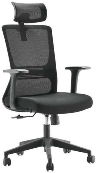 Kényelmes irodai szék, fekete színben kapható. A szék forgatható, magassága állítható, és ergonomikus háttámlával rendelkezik. Légáteresztő anyaggal kárpitozták az ülőfelületet, a háttámla pedig kiváló minőségű hálós anyaggal a szellőzés érdekében. Az ülőfelület nagy sűrűségű habbal van töltve a kényelmesebb ülési élmény érdekében. A szék pillangómechanizmussal van felszerelve a dőlésszög beállításához. A fejtámla magassága állítható, a karfák fixek. A szék fekete alapja polipropilénből készült, és 5 nejlon görgővel rendelkezik. A szék maximális teherbírása 100 kg.  - Mindigbútor