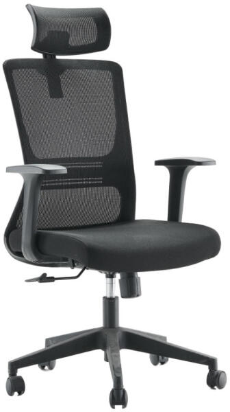 Kényelmes irodai szék, fekete színben kapható. A szék forgatható, magassága állítható, és ergonomikus háttámlával rendelkezik. Légáteresztő anyaggal kárpitozták az ülőfelületet, a háttámla pedig kiváló minőségű hálós anyaggal a szellőzés érdekében. Az ülőfelület nagy sűrűségű habbal van töltve a kényelmesebb ülési élmény érdekében. A szék pillangómechanizmussal van felszerelve a dőlésszög beállításához. A fejtámla magassága állítható, a karfák fixek. A szék fekete alapja polipropilénből készült, és 5 nejlon görgővel rendelkezik. A szék maximális teherbírása 100 kg.