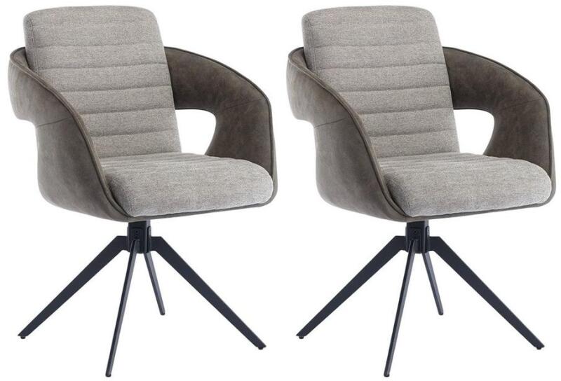 Érdekes étkezőszék egyedi dizájnnal, amely hangsúlyos és stilizált karfákkal ellátott ülőgarnitúrára hasonlít. A szürke színű ülőke 45 cm mély és 43 cm széles, a háttámlával együtt pedig díszes öltésekkel van steppelt, amelyek feldobják a szék megjelenését. A párnázott karfák 65 cm magasak. Az alap fémből készült, matt fekete színű porfestett, és forgólappal van felszerelve, amely lehetővé teszi a szék ülőrészének 180°-os elforgatását. A szék maximális teherbírása 120  kg.  - Mindigbútor