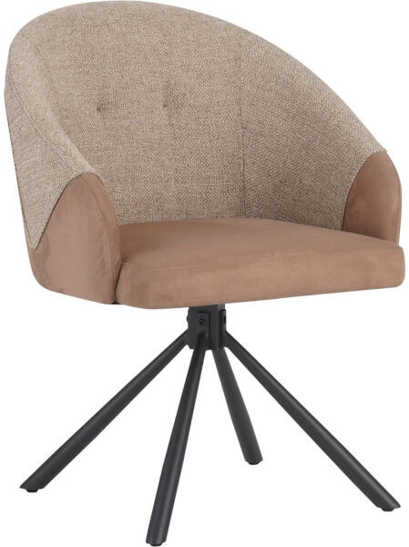 Forgatható étkezőszék, teljes egészében kárpitozott kiváló minőségű szövettel a kényelmes és elegáns megjelenésért. A szék két színben kapható: zöld vagy a barna és bézs szín szépen illeszkedő kombinációjában. Az ülőfelület 49 cm-es magasságban helyezkedik el, így kényelmes ülési élményt nyújt a legtöbb étkezőasztal magasságához. A dizájn kecsesen ívelt háttámlával rendelkezik, amely zökkenőmentesen átmenetet képez az oldalsó karfákba, így tartást és puha, organikus esztétikát biztosít. A háttámla és a karfák sima kombinációja biztosítja, hogy a szék ne csak jól nézzen ki, hanem a felhasználót is számos ülési pozícióban támassza meg. Ennek az étkezőszéknek a kiemelkedő tulajdonsága a beépített forgótányér, amely lehetővé teszi az ülőfelület 360 fokos elforgatását. Ez a funkció kényelmet és rugalmasságot biztosít, így könnyen megfordulhat és elérheti a különböző területeket anélkül, hogy az egész széket mozgatnia kellene. A szék alapja masszív fémből készült, ami tartósságot és stabilitást biztosít. Fekete színű porszórt bevonattal rendelkezik, ami további védelmet nyújt a környezeti tényezők, például a nedvesség és a kopás ellen, miközben hozzájárul a szék letisztult és modern megjelenéséhez is. A porszórt bevonat növeli a szék élettartamát, így tartós választás a mindennapi használatra. Az étkezőszék robusztus és maximális teherbírása 120 kg, így széles felhasználói kör számára alkalmas. A stílus, a kényelem és a tartósság kombinációja kiváló kiegészítője bármilyen étkezőnek, legyen szó akár otthonról, akár kereskedelmi környezetről. Kiváló minőségű szövetkárpitozás vonzó színválasztékban, a szék ergonomikus kialakítása, ívelt háttámlával és integrált karfákkal, 360 fokos forgatási funkcióval a praktikum érdekében, míg a masszív, porszórt fém talp garantálja a tartósságot. Mindezek a tulajdonságok egyetlen kialakításban teszik ezt az étkezőszéket megbízható és stílusos ülőalkalmatossá bármely étkező számára.