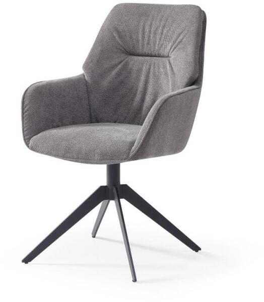 Gyönyörű étkezőszék modern megjelenéssel, amely szépen illik otthonába. Az ülőfelület, a háttámla és a karfák minőségi szövettel kárpitozottak, és alacsony sűrűségű habbal vannak kitöltve a kényelmesebb ülés érdekében. A szék ülőfelülete 41 cm széles, 44 cm mély, és 49 cm magasságban található a padlótól. A kárpitozott karfák 63 cm magasak. A szék alapja fekete fémből készült, és porszórt bevonattal van ellátva a jobb védelem érdekében. A szék ülése 180°-ban elforgatható az alapon. A szék maximális teherbírása 120 kg.  - Mindigbútor