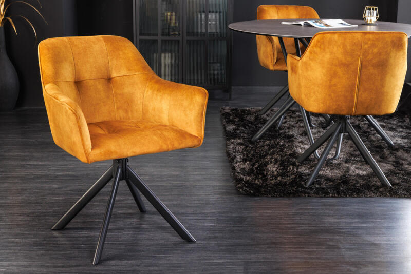Kényeztesse magát igazi, zavartalan kikapcsolódással. A Galileo design szék valódi lendületet ad a belső térnek. A nemes bársony huzat és a ferde fekete fém lábak kombinációja modernnek és izgalmasnak tűnik. Az összképet az ülés varrása és a háttámla hátulján található dekoratív varrás teszi tökéletessé. A kiváló minőségű kárpitozásnak és a formázott háttámláknak köszönhetően rendkívül kényelmes a széken ülni. Időtlen megjelenésével a belső terek széles skáláját fogja díszíteni, könnyen kombinálható más kiegészítőkkel, bútorokkal. A Galileo a forgatási funkciójának köszönhetően kiválóan alkalmas otthoni dolgozószobában vagy irodában történő használatra is. Első látásra beleszeret a székbe. Nem csak esztétikus és funkcionális, hanem mindenekelőtt kényelmes.