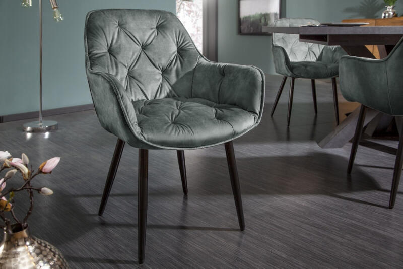 A design szék a modernség, a retro stílus és az egyszerűség tökéletes kombinációja. Ezzel a lenyűgöző székkel igazi remekművet hozhat otthonába. A szürkés-zöld borítás elegáns fekete fém lábakkal kombinálva egyedi megjelenést kölcsönöz minden belső térnek. A dekoratív varratok további szemet megragadó látványt nyújtanak az ülésnek. A szék tökéletes kényelmet nyújt Önnek egy családi vacsoránál, egy csésze kávénál a barátokkal vagy akár a munkahelyen. A szék sokoldalúan használható, alkalmas étkezőkhöz, konyhákhoz, valamint konferenciatermek vagy kávézók számára is.