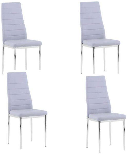 GoldFan Világos Szürke Székek - Elegáns és Modern Nappali/Étkező Bútor 4 db-os készlet Ez a 4 darabos világos szürke szék készlet tökéletes választás modern és elegáns nappali vagy étkező kialakításához. A székek időtlen dizájnnal rendelkeznek, így könnyen illeszkednek bármilyen stílusú otthonba. Kényelmesek, strapabíróak és könnyen tisztíthatók. Főbb jellemzők: 4 db modern szék egy készletben Elegáns, világos szürke szín Kényelmes ülés öko bőrből Stabil fém lábak Maximális teherbírás: 120 kg Könnyű összeszerelés (kb. 10 perc) Tökéletes otthoni és vendéglátóipari használatra Előnyök:Tökéletes kombináció: A modern design és a kényelmes ülés tökéletes harmóniában van. Könnyű tisztítás: Az öko bőr könnyen tisztítható, így mindig makulátlan marad a bútor. Strapabíró: A stabil fém lábak és a minőségi anyagok hosszú élettartamot biztosítanak. Könnyű összeszerelés: Gyorsan és egyszerűen összeszerelhető, így azonnal élvezheti a székek kényelmét. Használati területek: Nappali Étkező Iroda Étterem Kávézó A GoldFan Világos Szürke Székek kiváló választás mindazok számára, akik stílusos, kényelmes és tartós székeket keresnek otthonukba vagy üzletükbe.