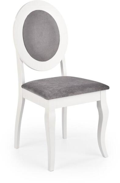 BAROCK étkezőszék Elegáns megjelenésű étkezőszék. A szék vázát fehérre festett tömör fa alkotja, ülőfelülete és háttámlája szürke színű szövet borítású. Méretek: Szélesség: 45 cm Mélység: 51 cm Magasság: 93 cm Ülőfelület magassága: 46 cm Terhelhetőség: 100 kg A terméket lapraszerelten szállítjuk! Csak a képen látható színben rendelhető! - Mindigbútor