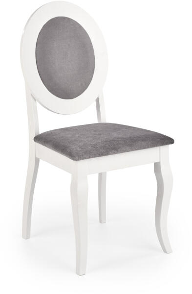 BAROCK étkezőszék Elegáns megjelenésű étkezőszék. A szék vázát fehérre festett tömör fa alkotja, ülőfelülete és háttámlája szürke színű szövet borítású. Méretek: Szélesség: 45 cm Mélység: 51 cm Magasság: 93 cm Ülőfelület magassága: 46 cm Terhelhetőség: 100 kg A terméket lapraszerelten szállítjuk! Csak a képen látható színben rendelhető!