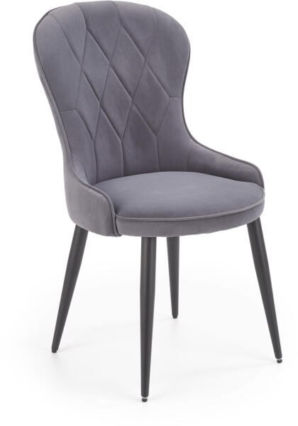 K366 szék, szürke Elegáns megjelenésű, modern kialakítású étkezőszék. A szürke színű ülőfelület bársonyos szövetből, lábai porszórt acélból készültek. Méretek: Szélesség: 52 cm Mélység: 58 cm Magasság: 92 cm Ülőfelület magassága: 46 cm Terhelhetőség: 100 kg A terméket lapraszerelten szállítjuk!