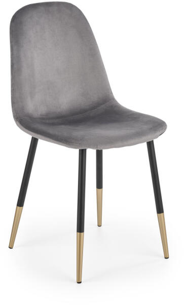 K379 szék, szürke Elegáns megjelenésű, modern kialakítású étkezőszék. Az ülőfelület szürke színű bársonyos szövettel bevont, a lábak krómból és acélból készültek. Méretek: Szélesség: 45 cm Mélység: 48 cm Magasság: 88 cm Ülőfelület magassága: 48 cm Terhelhetőség: 100 kg A terméket lapraszerelten szállítjuk!