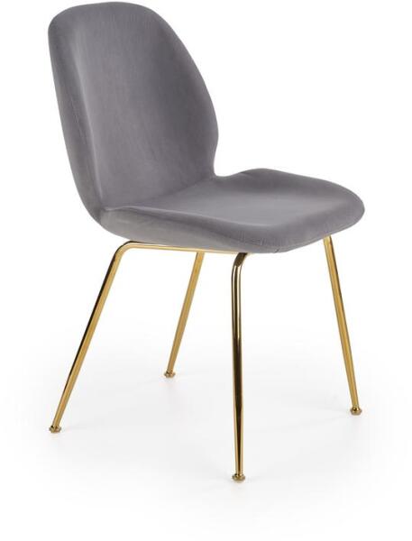 K381 szék, szürke Elegáns megjelenésű, modern kialakítású étkezőszék. Az ülőfelület szürke színű bársonyos szövettel bevont, a lábak krómból készültek. Méretek: Szélesség: 48 cm Mélység: 58 cm Magasság: 88 cm Ülőfelület magassága: 49 cm Terhelhetőség: 100 kg A terméket lapraszerelten szállítjuk! - Mindigbútor