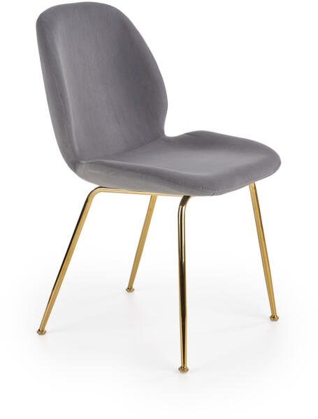 K381 szék, szürke Elegáns megjelenésű, modern kialakítású étkezőszék. Az ülőfelület szürke színű bársonyos szövettel bevont, a lábak krómból készültek. Méretek: Szélesség: 48 cm Mélység: 58 cm Magasság: 88 cm Ülőfelület magassága: 49 cm Terhelhetőség: 100 kg A terméket lapraszerelten szállítjuk!
