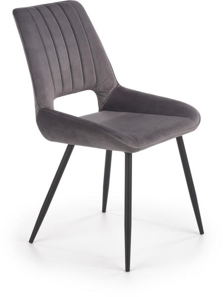 K404 szék, szürke Elegáns megjelenésű, modern kialakítású étkezőszék. Az ülőfelület szürke színű szövettel bevont, a lábak acélból készültek. Méretek: Szélesség: 52 cm Mélység: 58 cm Magasság: 88 cm Ülőfelület magassága: 47 cm Terhelhetőség: 100 kg A terméket lapraszerelten szállítjuk!